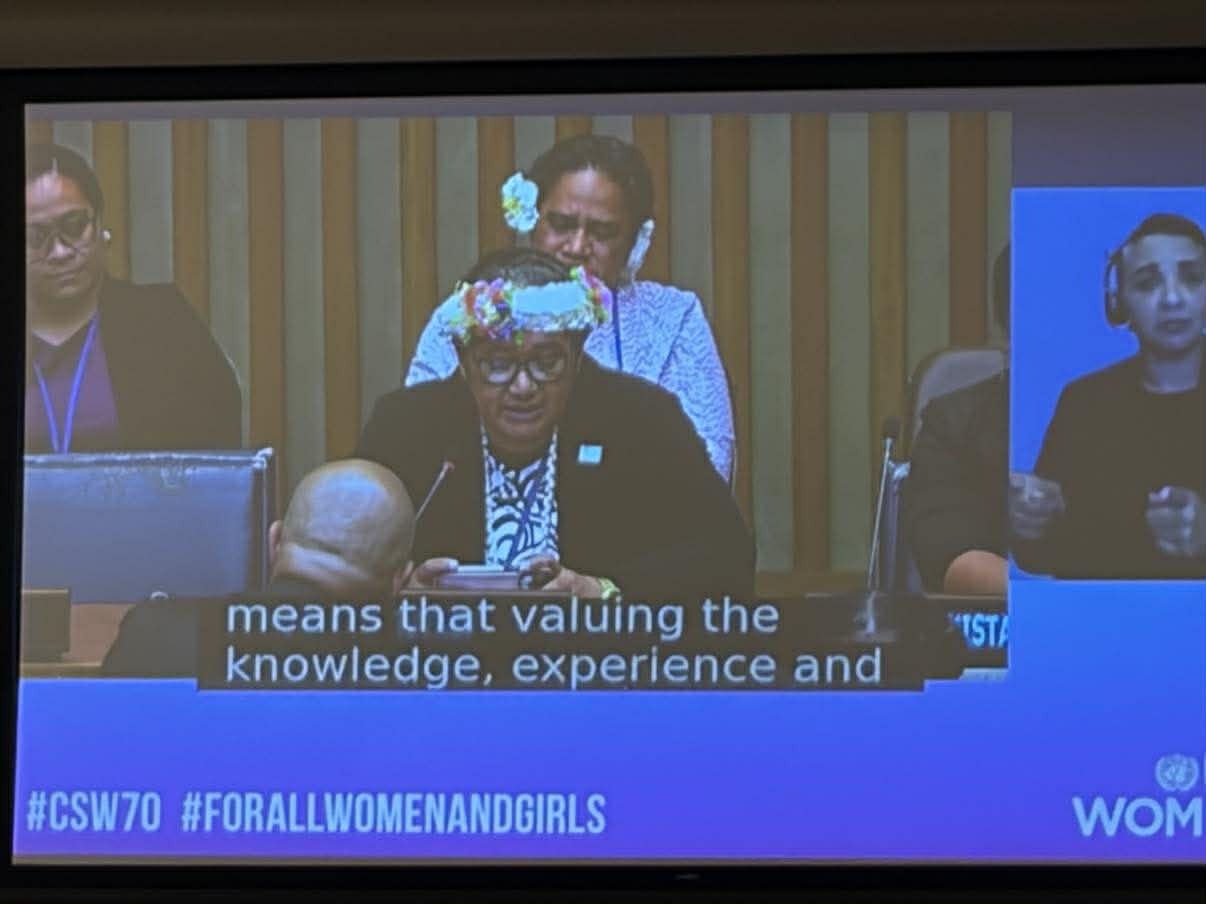 Tuvalu Highlights the Role of Older Women at CSW70 Ministerial Roundtable Tuvalu at the 70 th Session of the U.N. Commission on the Status of Women At the 70th Session of the Commission on the Status of Women (CSW70) in New York, Tuvalu participated in the Ministerial Roundtable on achieving gender equality and the empowerment of older women. Tuvalu’s intervention was delivered by H.E. Eselealofa Apinelu, High Commissioner of Tuvalu to Fiji and Head of Delegation. In the statement, Tuvalu highlighted the important role that older women play in sustaining families, communities and cultural knowledge. In Tuvaluan society, older women are caregivers, mediators of conflict, and custodians of traditions who help guide younger generations and strengthen community cohesion. At the same time, Tuvalu emphasised that gender equality requires that the contributions of older women are matched by opportunities to participate in decision-making. In many communities, local governance takes place through the Falekaupule, the council of elders, where women — including older women — generally have limited representation. Tuvalu also highlighted how changing migration patterns are affecting family structures across small island societies. As younger people leave their home islands to study or work abroad, older persons, including older women, may remain with fewer relatives nearby to provide daily support. Tuvalu reaffirmed that achieving gender equality across the life course means recognising the leadership, knowledge and experience of older women while ensuring they are fully included in shaping the future of their communities. Video Images Share this content: Post navigation 16 Days of Activism Campaign Against Gender Based Violence in Tuvalu 2023 Launching We-Care-Guideline (2026)